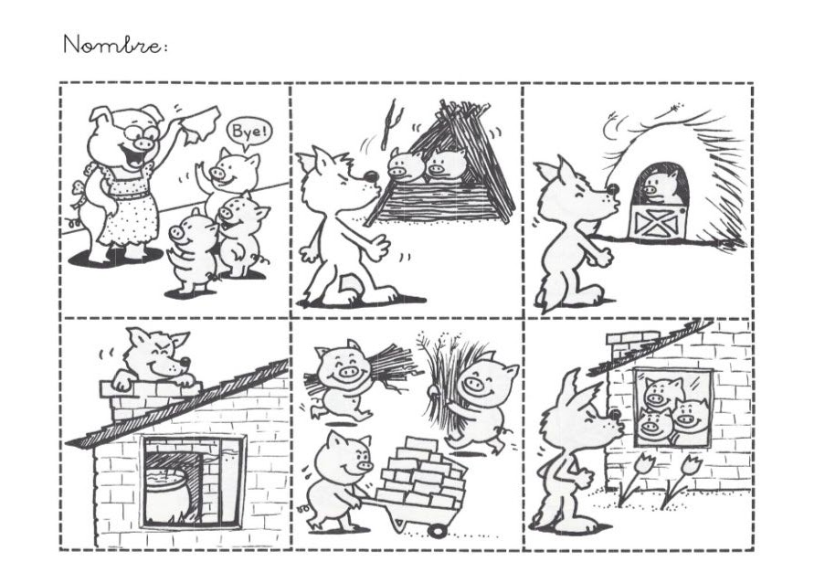 Cuentos Infantiles Dibujos Para Colorear A Los Tres Cerditos Y El Lobo Cuento En Imagenes Secuencia Temporal Dibujos Para Colorear Y Texto
